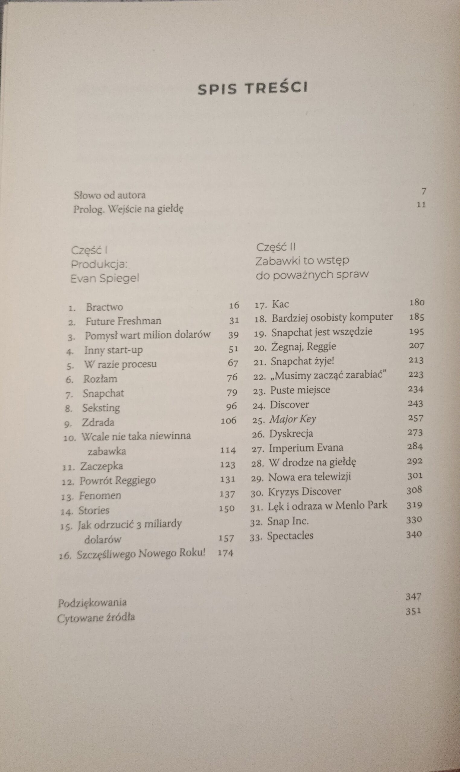 Autor Billy Gallagher prowadzi czytelnika przez kulisy powstania i błyskawicznego rozwoju Snapchata – od pomysłu narzuconego podczas studenckiej imprezy w prestiżowym Stanford, aż po wielomiliardowy biznes, który zmienił sposób, w jaki miliony ludzi na całym świecie komunikują się i dzielą chwilami. Książka przybliża skomplikowane losy Evan Spiegela, jego współzałożyciela Bobby’ego Murphy’ego oraz kulisy wyjścia trzeciego współtwórcy firmy. To historia pełna wyzwań, rywalizacji, a także strategicznych decyzji biznesowych, takich jak odmowa sprzedaży firmy Markowi Zuckerbergowi za 3 miliardy dolarów.