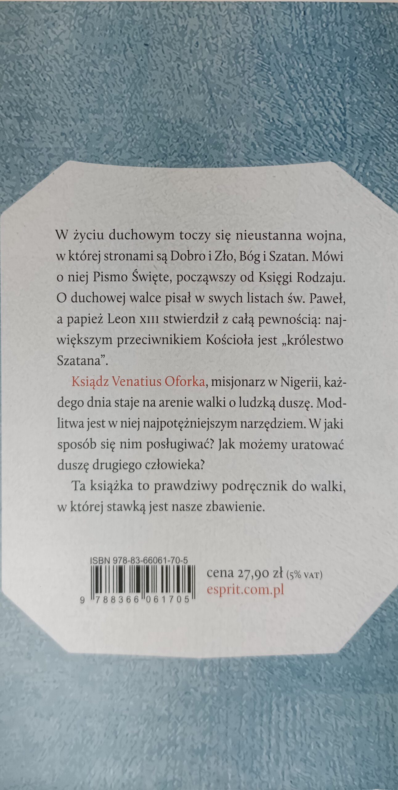 Vanatius Oforka w książce pt.” Sztuka walki duchowej”, konfrontuje czytelnika z obrazem Kościoła składającego się z rannych i bezbronnych , Kościoła, który prowadzi wojnę z okrutnym wrogiem.