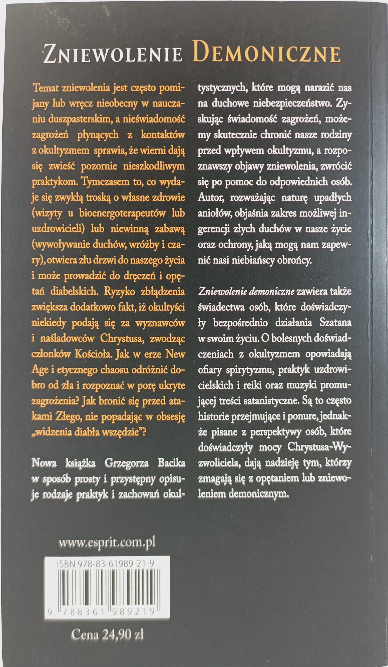 To kolejna książka autorstwa Grzegorza Bacika, obok pierwszej zatytułowanej „Okultyzm”, zatytułowana „Zniewolenie demoniczne o działaniu nadzwyczajnym Szatana i duchowym zagrożeniu okultyzmem”.