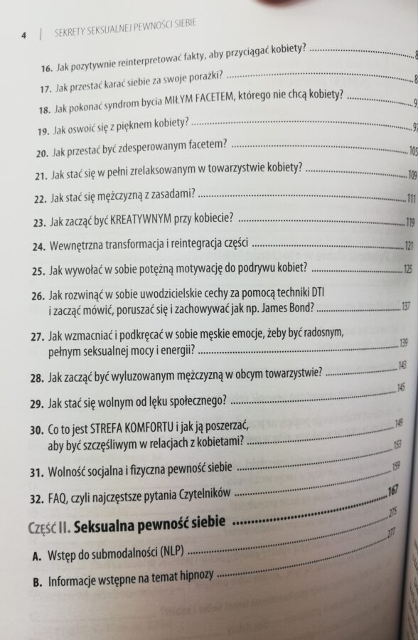 Poznasz cudowną technikę, która pozwoli CI już nigdy nie patrzeć na piękne kobiety jak na istoty lepsze od Ciebie, na które nie zasługujesz. Samo ćwiczenie warte jest ceny i lektury tej książki.