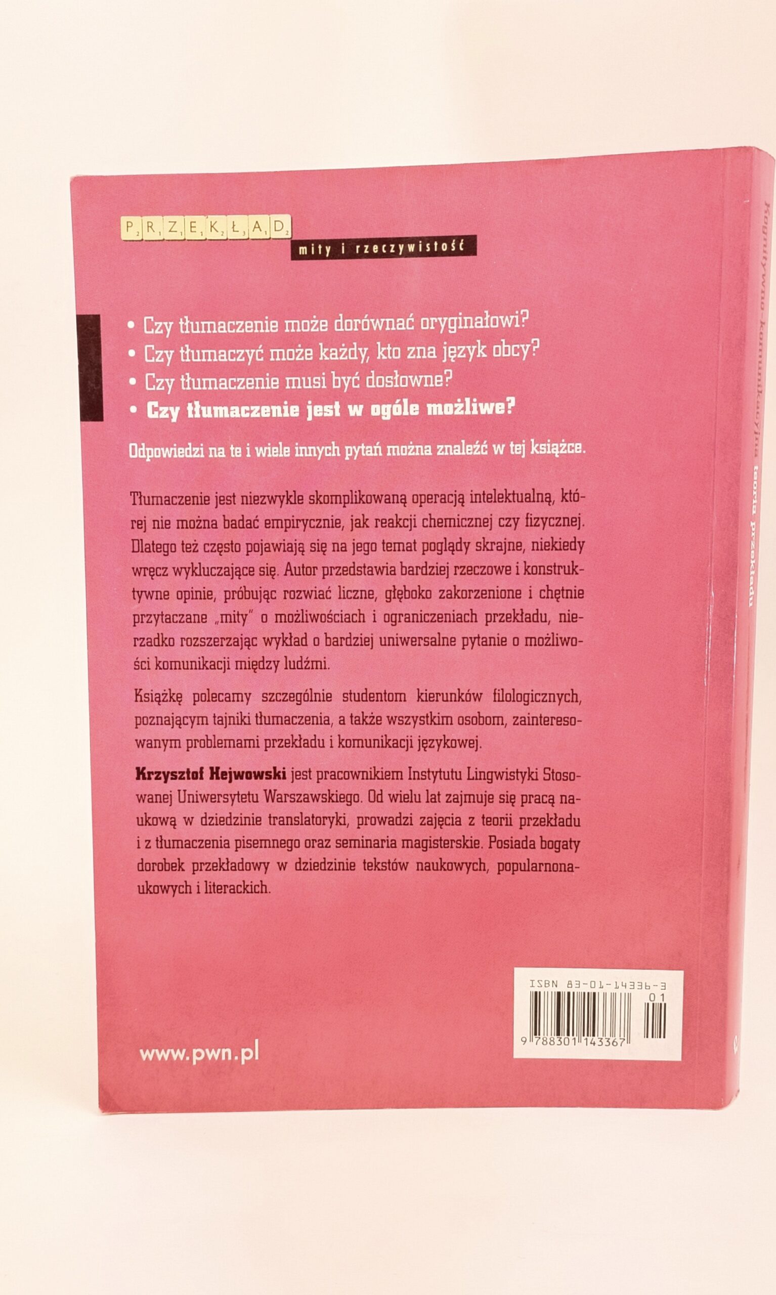 Wiele zawdzięczam moim kolegom i przyjaciołom w dyskusjach i rozmowach z nimi z pewnością narodziło się wiele pomysłów wykorzystanych w tej książce. Podziękowania należą się też moim studentom – tym, którzy pisali pod moim kierunkiem prace magisterskie z dziedziny teorii przekładu (część z nich została wymieniona w bibliografii), oraz tym, którzy biedzili się nad tłumaczeniem omówionych w książce tekstów. Tak zachęca do lektury tej książki sam Autor Krzysztof Hejwowski.